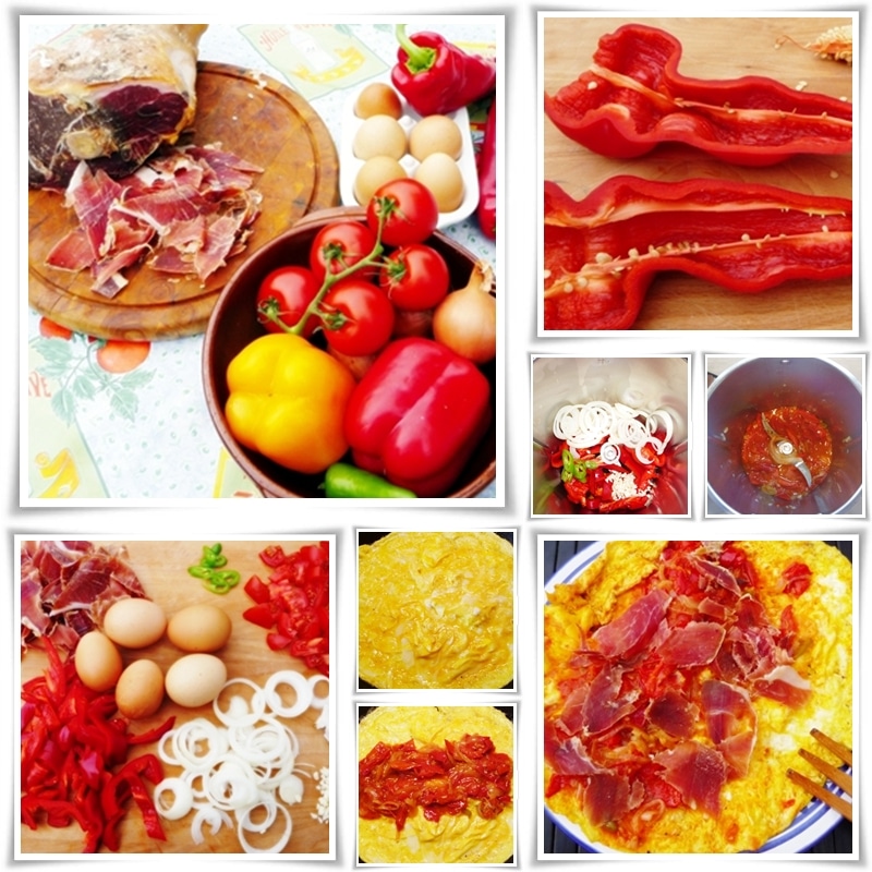 - Spoon or pour the Pipérade over the omelette and top with the shavings of ham. Optionally sprinkle with fresh chopped herbs.