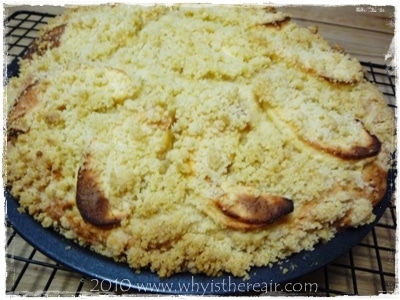 Rather than apple pie, I have taken some more of the amazing windfall apples I gathered in Tongham Community Wood and made an apple cake. Based on a traditional Dorset apple cake, this cake is made in the Thermomix and has a bit of an extra twist to it: a layer of crumble in the middle as well as on top!
