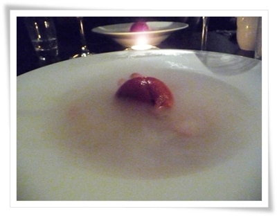 Chef Olejarka presented us at every course with “Art on a plate” as well as artistry on the palate. Tastes were balanced. Unusual elements enhanced rather than detracted. Dessert even presented us with a touch of alchemy, as dry ice hidden in the plate reacted with the raspberry soup poured over the dish to create a “raspberry volcano” as a delightful surprise ending to our meal.