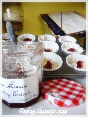 From this basic recipe you can create your own variations by adding fruits and flavours. I used the “Jelly Muffins” variation and added a teaspoon of strawberry jam on top of each cup of batter to make a gooey, yummy creation.