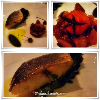 Fresh, tasty, perfectly cooked sea bass meets an assortment of accompaniments with great success. The salsa verde was tops at enhancing the freshness of the fish. Served with a glass of Vermentino di Sardinia