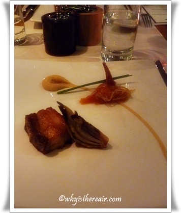A real delight of modern Italian cooking. Served with a glass of Etna Rosso, much like a Pinot Noir, with enough acidity to cut through the fat of the belly pork