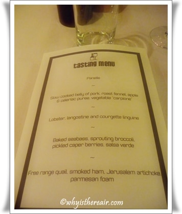 After draining our glasses of their delicious brews we crossed the road and pulled open the door of La Luna. There we were greeted by name (!) by Sommelier Daniele, just one of the many courteous and knowledgeable staff members on this busy Saturday night. And there, awaiting us at our table, was our specially created Tasting Menu.