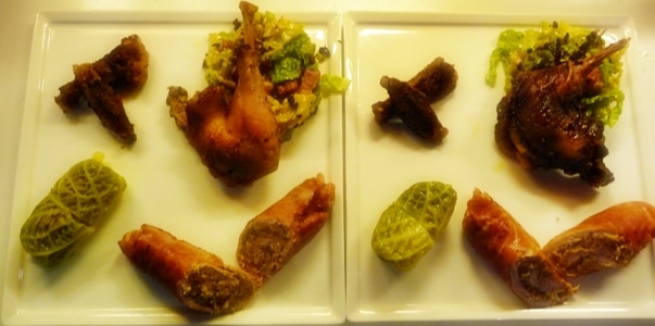 1. Braised leg of pheasant on a bed of cabbage