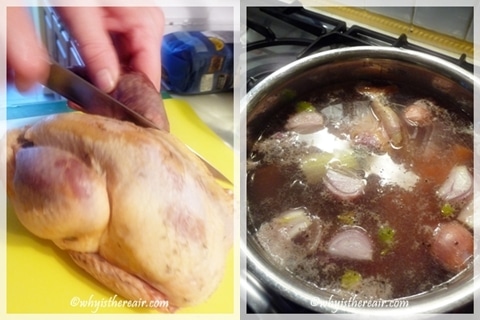 Make a stock with the carcass, boiling it in water with carrot, onion and celery for about 30 minutes.
