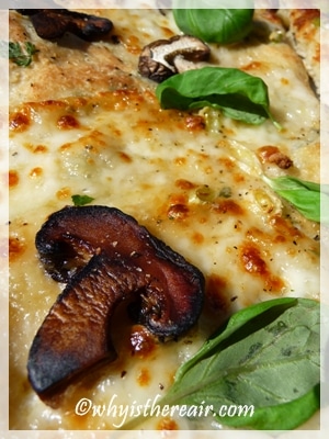White pizza topped with a rocket salad inspired us today. We couldn’t decide which would be better – soft balls of mozzarella or the harder grated stuff – so we made one of each. As you can imagine, I preferred the soft mozzarella and John liked the grated type 😉