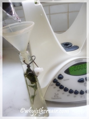 I also had a choice of sugars to use: white granulated with vanilla beans in it; golden granulated fair-trade; and Demerara or raw, unprocessed granulated sugar. The darker the sugar, the darker the syrup (be careful if colour makes a difference) and the deeper the taste.