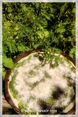 Now we’re back home in Surrey and I had some rocket pesto left (it keeps for a few weeks in the fridge in a sterilised jar and covered with olive oil – if you can resist eating it in one go) and needed to come up with a quick and tasty lunch. I had frozen some pizza dough from my last batch of my Jamie Oliver-inspired pizza dough recipe and my lovely green rocket pesto, so hey pesto – I mean presto – why not have green pesto pizza?