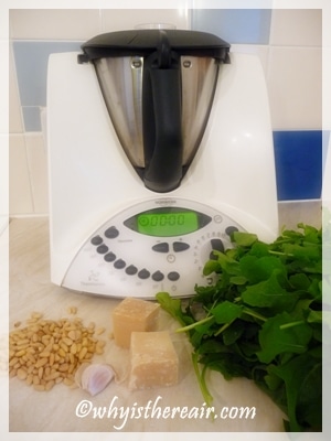 So there I was in the kitchen of a cosy stone cottage on the outskirts of Beaminster, Dorset, with my Thermomix on the counter and some fresh rocket from my garden in the fridge. Following the pesto recipe in “Fast and Easy Cooking” I substituted my home-grown rocket for the usual basil and whipped up some rocket pesto in under a minute in my trusty Thermomix!