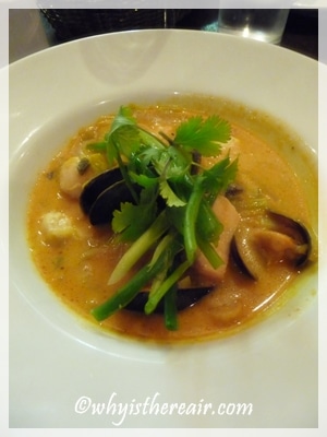 Thai style seafood broth with red curry, lemon grass and coriander