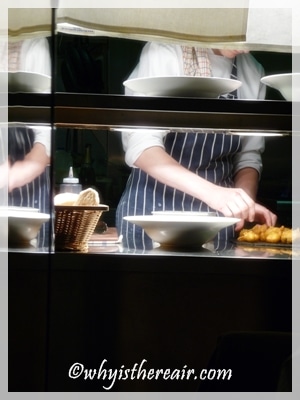 Our two dining experiences at Green’s confirmed this. Both times we were seated in the downstairs Bistro, whose cosy atmosphere quite well suited a couple on holiday. The walls of the bistro are covered with blackboard specials and lists of Whitby fishing boats and their skippers who provide the oh-so-fresh seafood catch for customers to appreciate. This provides perfectly traceable provenance for the fish we enjoy at Green’s.