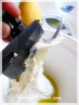 - Scrape sides of TM bowl. Taste and re-season as required, adding the juice of your second lemon to give it a sharper taste. Whisk again a few seconds, tip into a pretty bowl and serve with a trickle of olive oil.