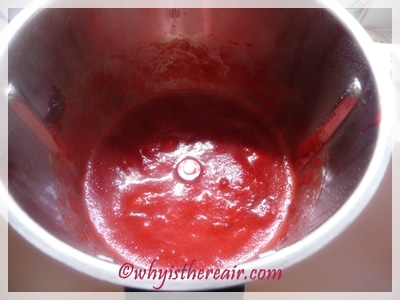 Enter my trusty Thermomix. UK Thermomix Director Janie Turner once told me a neat little trick that I put to use here. I simply loaded my bowl with washed, whole plums and set them to cook 8 minutes/100 ° C/Reverse Blade Function and went about my business as Thermomix softened my plums and disengaged the pits. What resulted was a hot, thick mass of plum flesh that I was easily able to strain, removing not only the pits but the skins as well. Pure genius! Thanks, Janie!