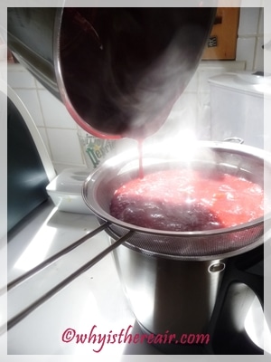 Then I realised that I needed to know the weight of plums so I could add an equal weight of sugar… and I should have weighed the plums as I was straining them. Whatever could I do now, that wouldn’t create the waste and washing up I wanted so desperately to avoid?
