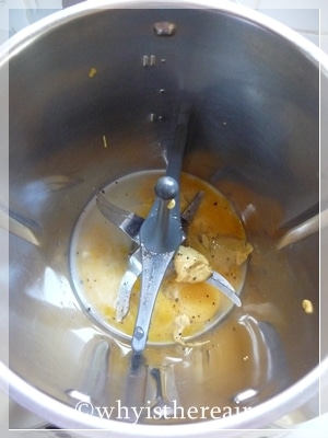 3. After all the oil is incorporated, scrape down the sides and lid of the TM bowl with the spatula. Mix again 10 seconds/Speed 4. Keep in a jar in the fridge.