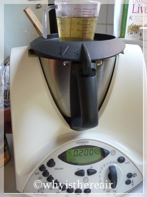 Weigh your oil into a jug set on top of the Thermomix bowl