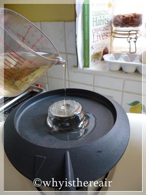 Pour the oil SLOWLY onto the upturned measuring cup