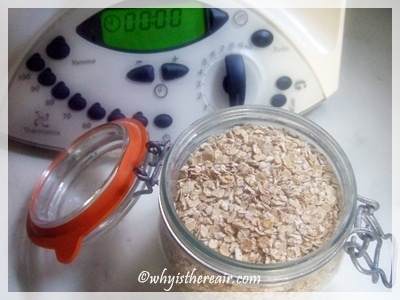 - Place first three ingredients in Thermomix bowl and cook 100° C/6 minutes/Speed Spoon/Reverse Blade Direction. Note: to have that extra minute to take a proper shower, I cook 90° C/7 minutes/Speed Spoon/Reverse Blade Direction. Serve plain or with the topping of your choice.