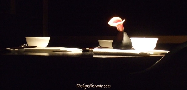 Getting to the restaurant itself was another story altogether. Neither John nor I were thrilled with the 28-minute drive through London that turned into a 90-minute nightmare of one-way streets and misguided GPS directions. So by the time we got to Hakkasan we were stressed and frustrated, and I could have bitten someone’s head off. Yes, mild-mannered Madame Thermomix can show a bit of a temper when pushed 😉